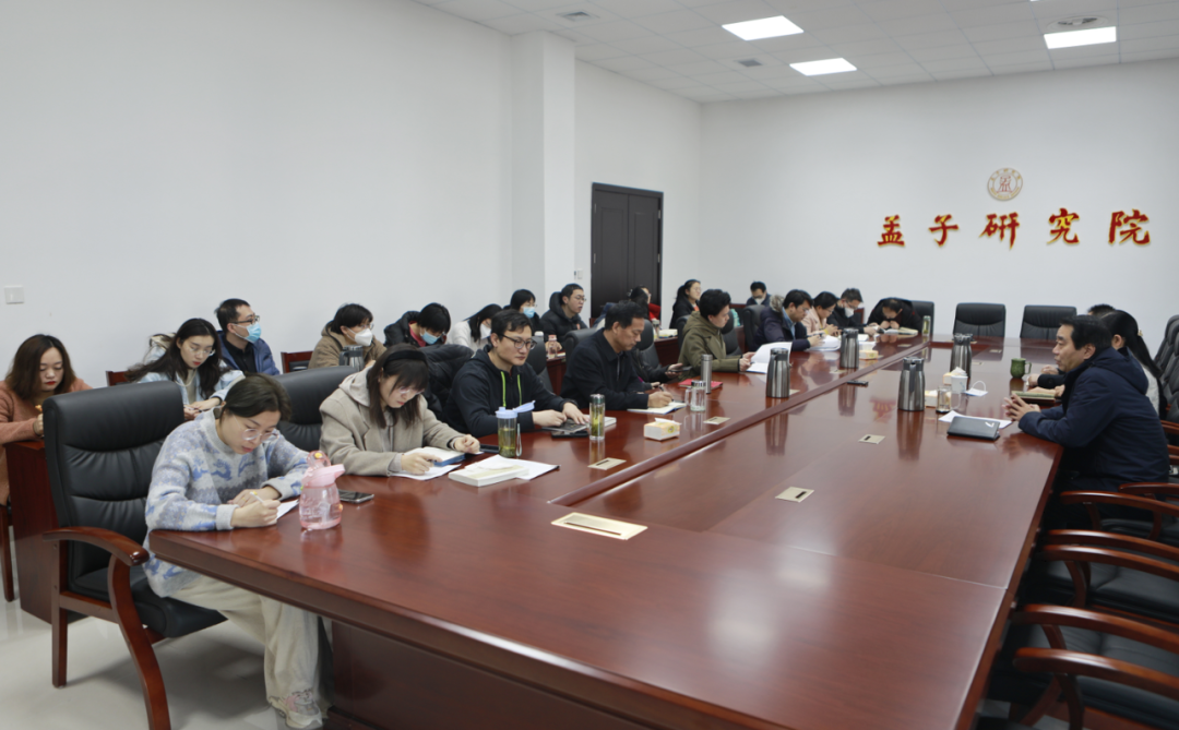 在听取完全体工作人员发言后,陈晓霞强调,要认真贯彻落实本次会议精神,奋力抓好当前工作。陈晓霞围绕当前工作形势,详细剖析了当下发展面临的困境,并提出了明确具体的工作要求:一、认清形势,明确定位。孟子研究院将紧紧依靠尼山世界儒学中心的坚强领导,按照儒学中心的谋划布局开展工作,立足学术研究、传播普及两个方面,将优秀传统文化融入时代、走进生活。同时,在科研力量相对薄弱的情况下,鼓励全体工作人员要不用扬鞭自奋蹄,在爬坡逆风中创新发展。二、突出重点,狠抓落实。重视科研发展,提升专业能力,将学术研究、科研建设作为下一步发展重点,做好《孟子文献集成》编校、《新编孟子正义》课题等重点工作。三、彰显特色,传播普及。要顺应媒体深度融合趋势,创新并丰富传播手段,拓展传播渠道,擦亮孟子大讲堂、孟母大讲堂等特色品牌。四、完善管理,提升效率。要坚定不移实施人才培育战略, 围绕人才“引、用、育、留”方面,大力实施人才工程,延揽人才;建立完善管理和考核制度,进一步激发孟院发展活力;形成激励机制,进一步发挥个人积极性、主动性和创造性;强化工作作风,真抓实干转作风,踔厉奋发谱新篇。