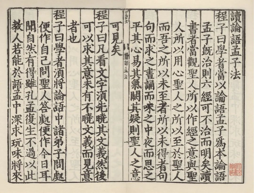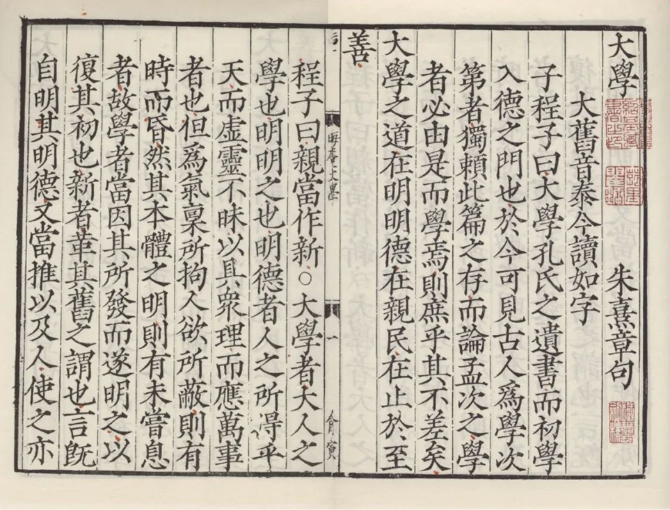 《大学》乃孔氏遗书,须从此学则不差。(《河南程氏遗书》卷2上《二先生语二上·元丰己未吕与叔东见二先生语》)