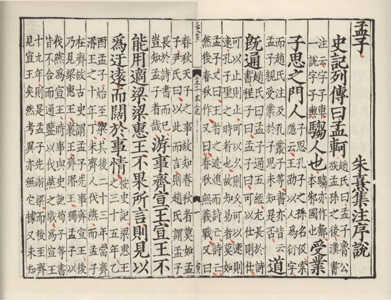 以上是《四书章句集注》出现第一例“程子又曰”的上下文语境。单行本中的《孟子序说》将司马迁、韩愈、二程、杨时的12条文献都用单独的一段处理,《宋本孟子集注·孟子序说》则将每人的那一部分都当作一大段处理。对于本文过录的这三条,《宋本孟子集注》的表述为: