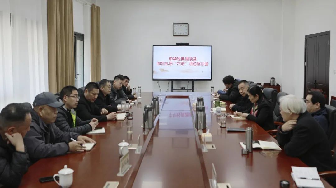 2月16日,为贯彻落实全省宣传文化系统“强本领、保落实、保质量”主题年动员会精神以及白玉刚部长到尼山世界儒学中心调研时的指示精神,进一步推动中华优秀传统文化的创造性转化创新性发展,孟子研究院召开中华经典诵读及邹鲁礼乐“六进”活动座谈会。邹城市融媒体中心党委委员、副主任来存涛,邹城教师进修学校副校长、高级讲师王相雷,邹城市非遗传承中心主任王崇印一行8人出席座谈会。孟子研究院党委书记、院长、研究员陈晓霞出席会议并作总结讲话,孟子研究院党委委员、副院长赵龙主持会议,党委委员、副院长毛景卫以及各部门相关负责同志参加会议。