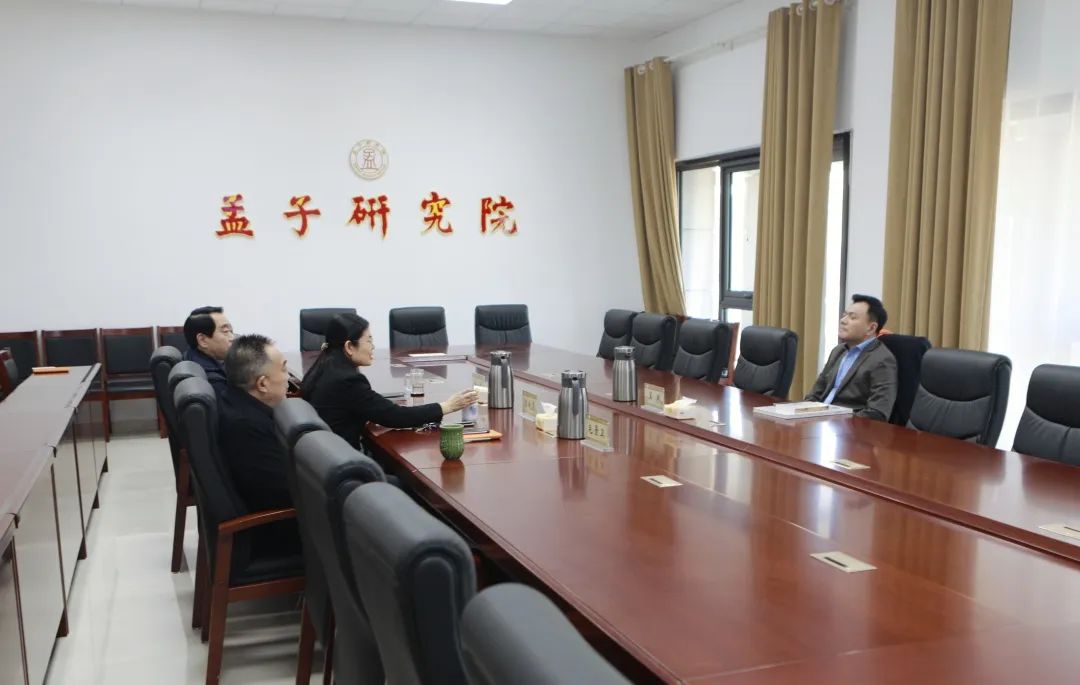 陈晓霞对孟斌先生的到来表示欢迎,并对孟先生长期以来对孟子研究院的关心和支持表示衷心的感谢。陈晓霞表示,推动中华优秀传统文化在新时代的传承发展是孟子研究院的职责使命, 儒商文化作为中华优秀传统文化的有机组成部分,其所包含的 “以人为本”“仁者爱人”“天人合一”“仁民爱物”等思想为新时代企业发展提供了有益启发,双方应进一步深挖儒商文化资源,不断将儒商文化发扬光大。陈晓霞指出,孟子研究院将积极推动孟子书院、孟母学堂在海内外的设立,广泛推动儒学特别是孟学研究及传播工作的高质量发展;双方会继续加强交流合作,策划开展多种文化传播交流活动,推动中华优秀传统文化“走出去”,助力中华文化更好走向世界。
