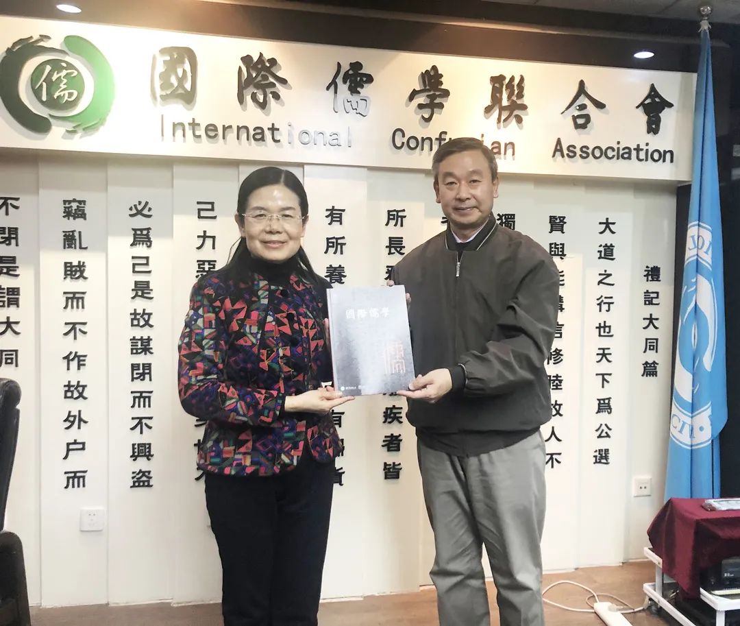 在国际儒学联合会,双方围绕孟子思想研究、国际青年儒学论坛筹办、儒学人才培养、孟苑研修基地建设等工作进行了深入交流。陈晓霞表示,将加强与国际儒学联合会的合作交流,持续做强国际青年儒学论坛,打造国际儒学传播特色品牌;充分发挥孟子研究院在孟学研究、邹鲁文化、母教文化等方面的优势,整合高端智库资源,推进文化传承创新,深化文明交流互鉴。徐永吉表示,双方应深入挖掘传统文化的价值理念和道德精髓,深化拓展合作,借助孟苑研修基地平台,策划开展中外青年文化交流活动,推动中华优秀传统文化传承好、走出去,为促进国际人文交流和友好往来作出更大贡献。