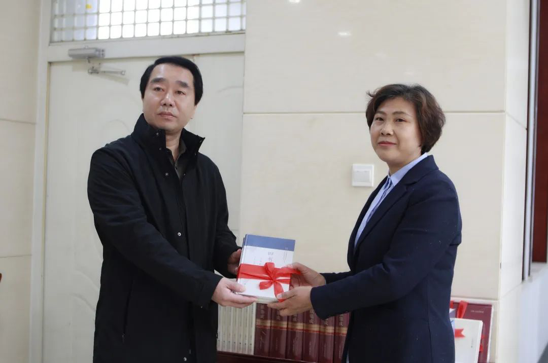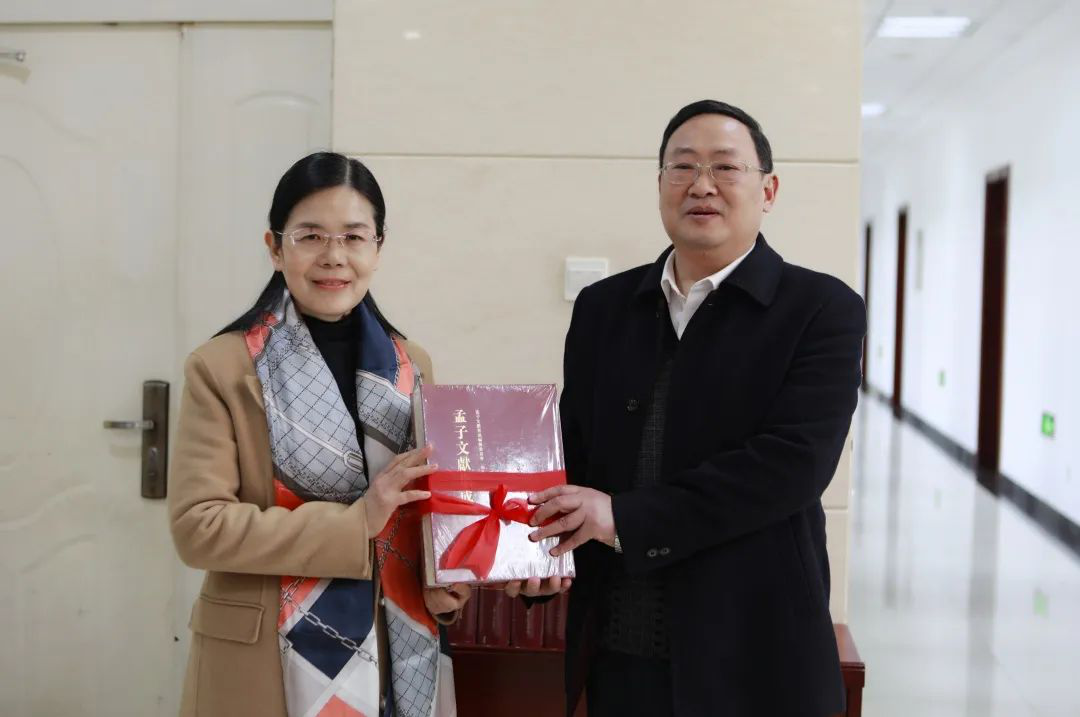 陈晓霞代表孟子研究院向邹城市政协文史馆捐赠《孟子文献集成》