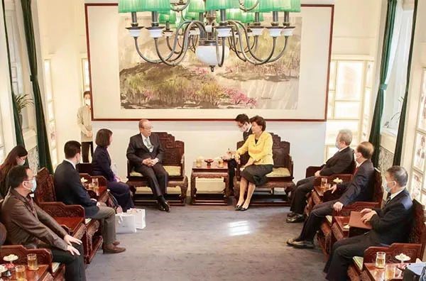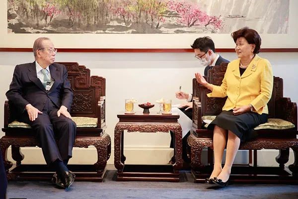 中国前驻日本大使、中日友好协会常务副会长程永华、国际儒学联合会常务副会长丁伟、副理事长王敏、秘书长贾德永、故宫博物院常务副院长娄玮等陪同参加会见。
