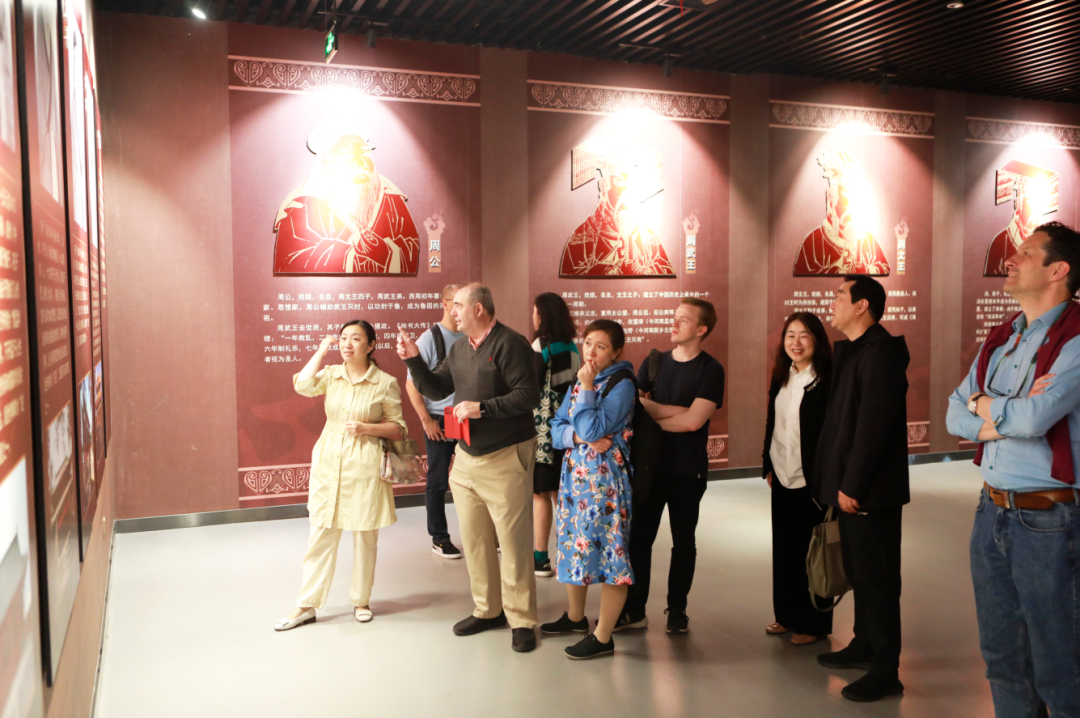 4月19日, 由尼山世界儒学中心(中国孔子基金会秘书处)、上海外国语大学主办的“青年汉学家培养计划”培训班暨“国际中文教育与传播”交流座谈会与会专家学者到孟子研究院考察调研。来自德国、法国、西班牙等国家的6名外方专家学者以及上海外国语大学的4名专家学者,先后参观调研了邹城博物馆、后八里沟村、孟苑和孟府孟庙。孟子研究院党委书记、院长、研究员陈晓霞,党委委员、副院长赵龙陪同考察调研。