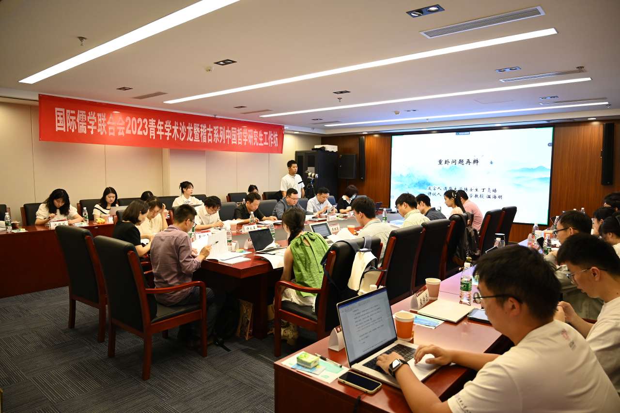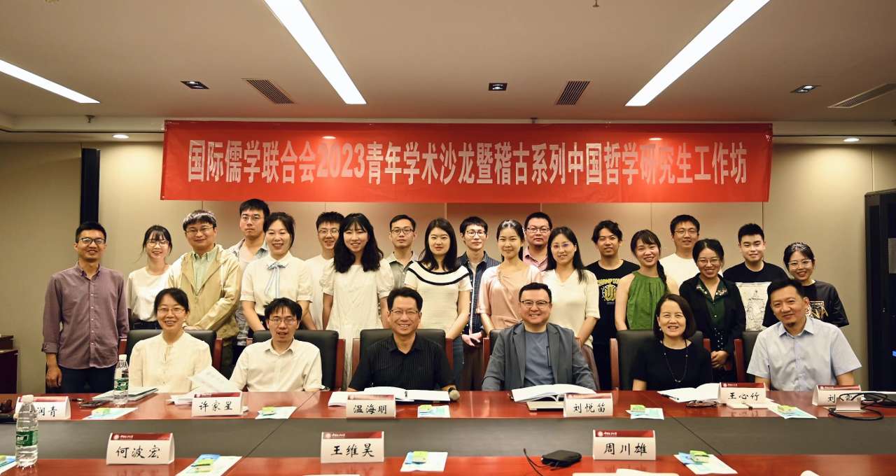 2023年6月10日,由国际儒学联合会主办,国际儒学联合会学术委员会、中国政法大学国际儒学院承办的“青年学术沙龙暨稽古工作坊”成功举办。全国政协常委、国际儒学联合会副会长兼学术委员会主任王学典;国际儒联学术委员会副主任、中国人民大学教授温海明;中国政法大学国际儒学院副院长王心竹;中国政法大学人文学院副院长、哲学系主任刘震;北京师范大学教授许家星;中国政法大学教授李虎群;中国社会科学院研究员刘悦笛;山西大学教授梅剑华;清华大学副教授、哲学系书记赵金刚;中共中央党校副教授曹润青;北外中外文化交流研究基地办公室主任张凯以及来自北京大学、清华大学、中国人民大学、中共中央党校、北京师范大学、中国政法大学、首都师范大学等高校的十八位青年学生齐聚一堂,以“心意:当代儒学之思与文明对话”为主题,展开学术交流。