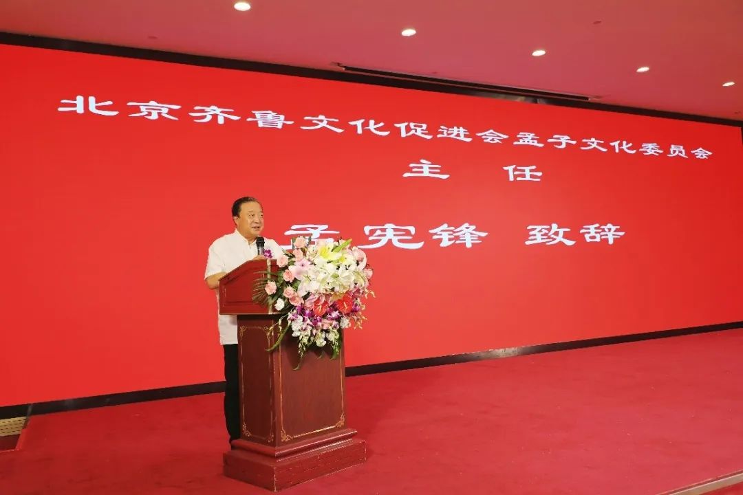 北京齐鲁文化促进会孟子文化委员会主任孟宪锋致欢迎词。他说,儒家文化源远流长,孟子思想博大精深。孟子是战国时期伟大的思想家、政治家、教育家,是继孔子之后儒家思想卓越的集大成者,对中华传统文化作出了历史性贡献,在中国历史上具有极其重要的地位,仅次于“至圣”孔子,被世人尊称为“亚圣”,与孔子并称“孔孟”。习近平总书记说,“文化是一个国家、一个民族的灵魂。文化兴国运兴,文化强民族强。没有高度的文化自信,没有文化的繁荣兴盛,就没有中华民族伟大复兴。”习近平总书记在不同场合,多次引用《孟子》一书中的经典语句,有力地激发了全国人民干事创业的热情和活力,促进了我国社会经济的健康、快速发展。北京孟子文化委员会将秉承“弘扬儒学传统,传承孟子文化、服务治国理政,帮扶孟氏宗亲”的宗旨,坚持“以商养会,以会促商”和“公平、公正、公开”的原则,坚持正确的政治方向,遵守国家有关法律法规,按照本会《章程》和制度规定,务实有效地开展各项工作。团结和组织社会各界有识之士及优秀孟子后裔,以深入研究挖掘孟子思想和弘扬儒学传统文化为主线,传承祖德,激励后人,惠及社会和每个家庭。