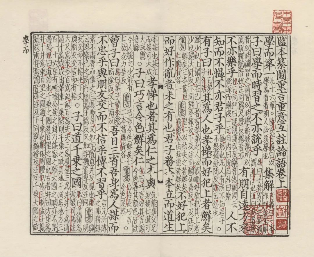 ▲《监本纂图重言重意互注论语》宋刘氏天香书院刻本