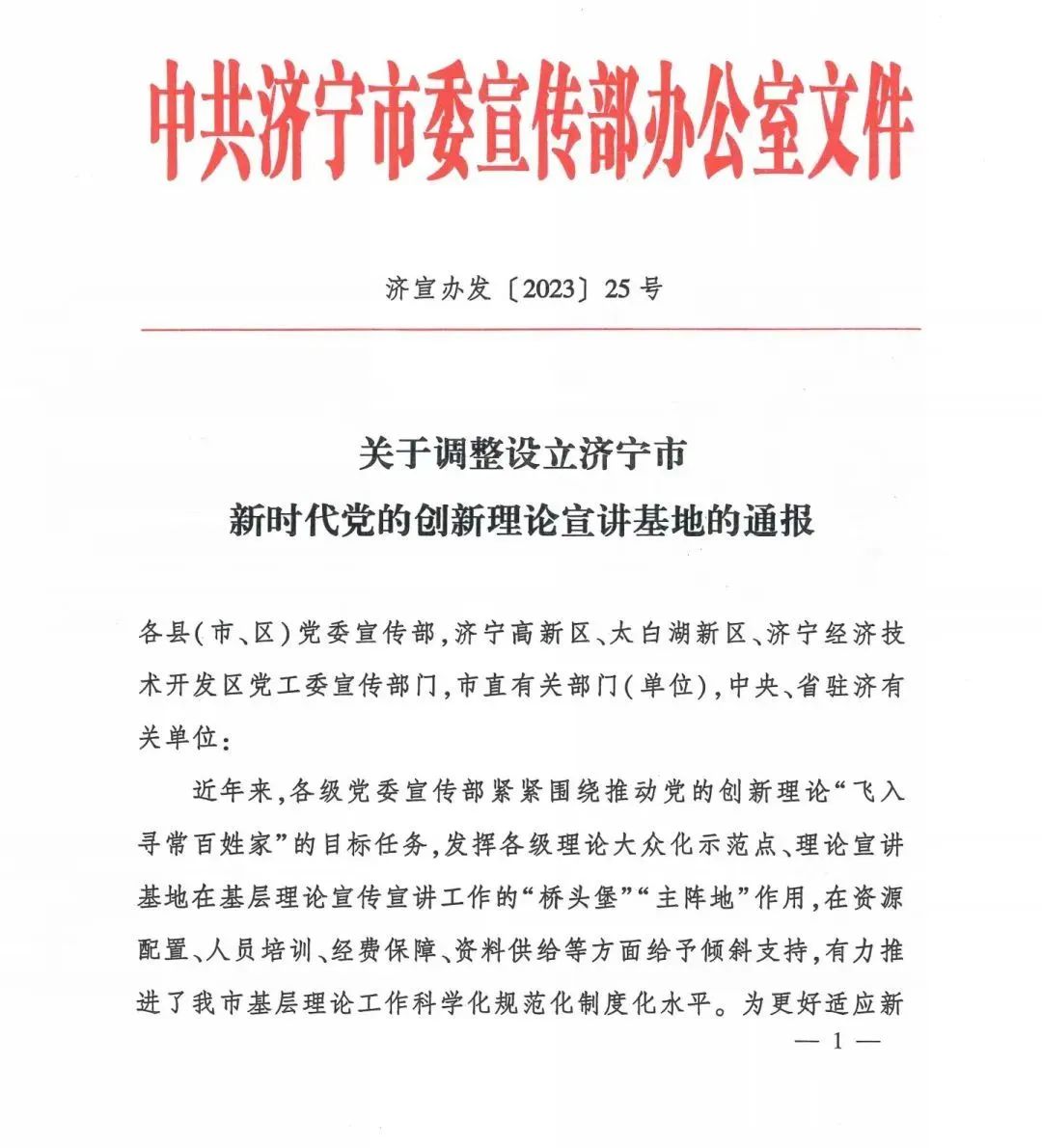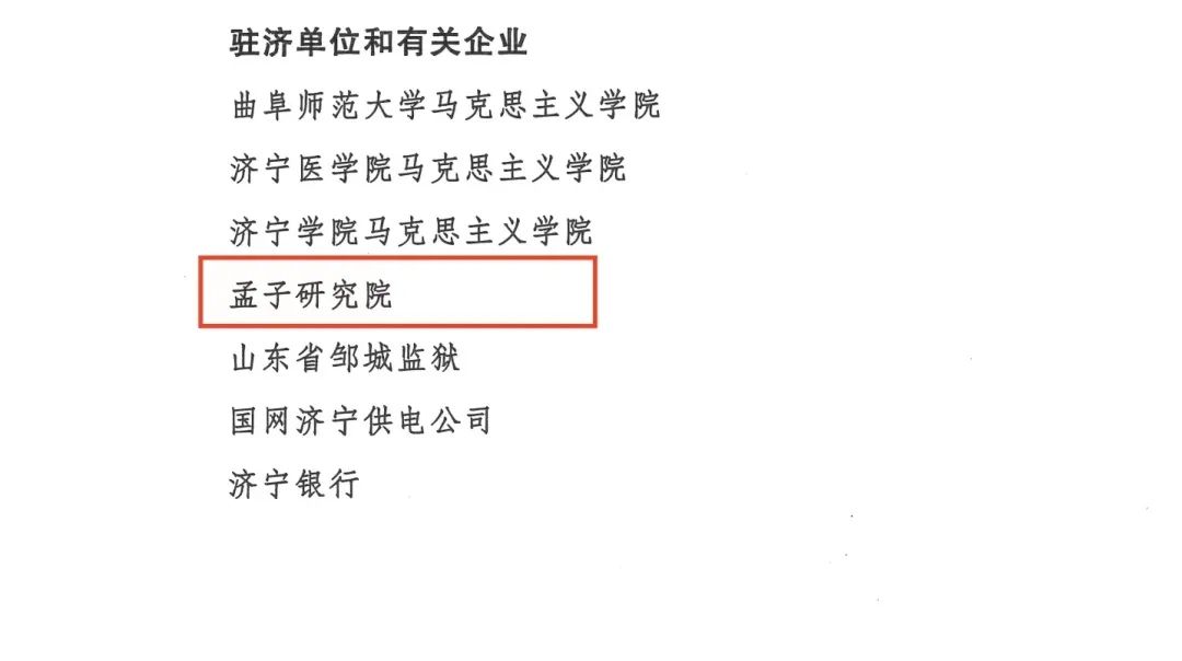 近日,中共济宁市委宣传部办公室发布《关于调整设立济宁市新时代党的创新理论宣讲基地的通报》,对100个市级新时代党的创新理论宣讲基地予以公布。其中,孟子研究院获评“济宁市新时代创新理论宣讲基地”。