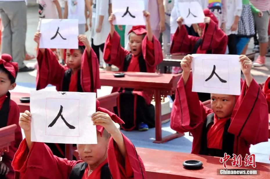 资料图:孟子故里山东邹城举办传统“开笔礼”。王崇印 摄