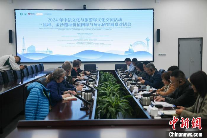 2024年中法文化与旅游年文化交流活动“三星堆、金沙遗址价值阐释与展示研究圆桌对话会”11日在位于四川广汉的三星堆博物馆举行。会上,中法专家共话文化遗产保护利用国际合作。