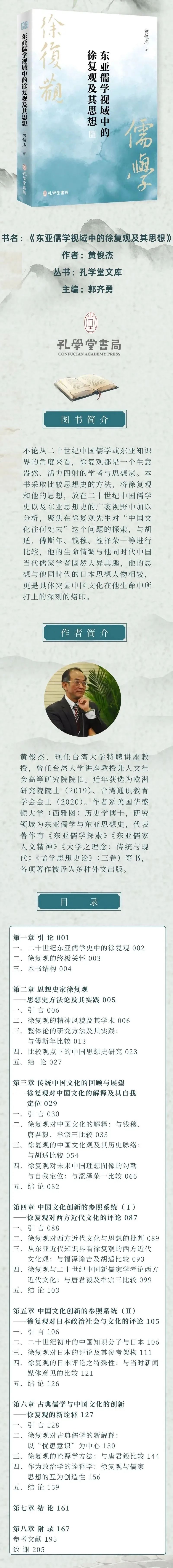 黄俊杰:《东亚儒学视域中的徐复观及其思想》出版暨目录