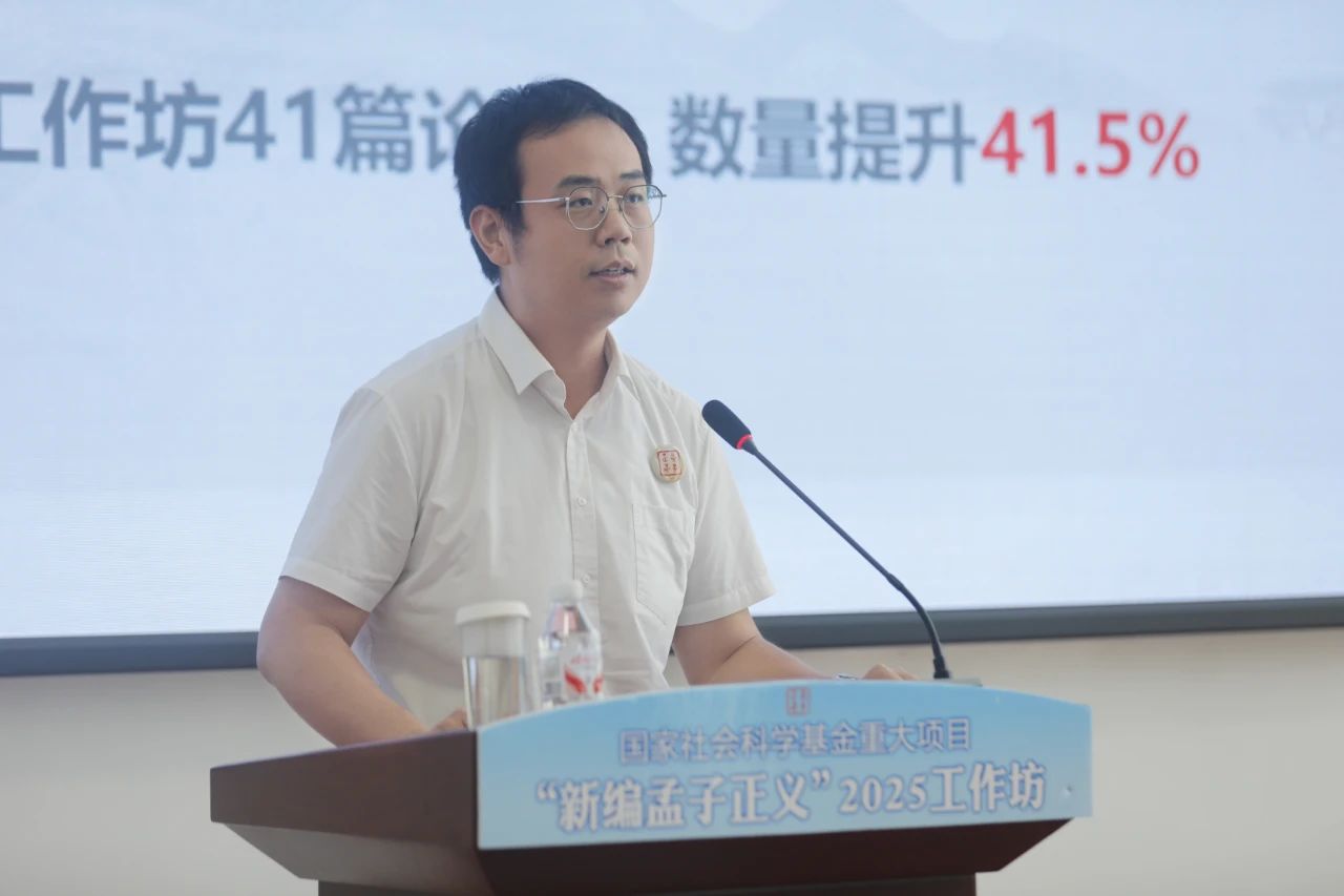 钮则圳副教授对专家学者现场发言及提交论文进行了全面、精准、详实地归纳与梳理。他表示,此次工作坊在孟学研究界引发热烈响应,学者参与踊跃,共举办5场精彩的主旨发言、8场分论坛研讨,收到了60余篇学术论文。从论文成果看,本次工作坊论文数量较上年41篇有较大提升,质量显著增强。从研究主题看,主要集中于《孟子》单章研究、孟子思想研究、孟学史研究以及其他与孟子相关联的研究,展示出孟学研究的多元化和多样性。从参与群体看,青年学者积极参与此次活动,占总人数1/3以上,展现出学术薪传的蓬勃气象。此次工作坊总体呈现出研究深化(掘井及泉)、视野宏大(立乎其大)、后浪涌现(英才后劲)等特点。