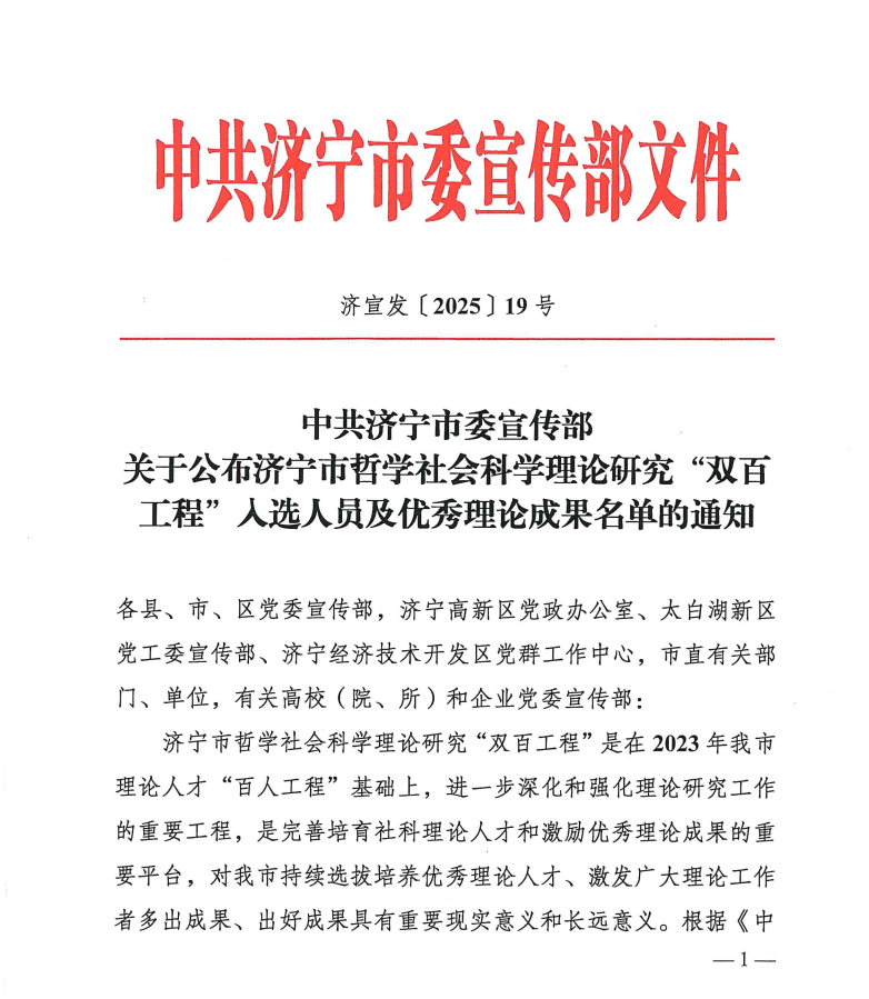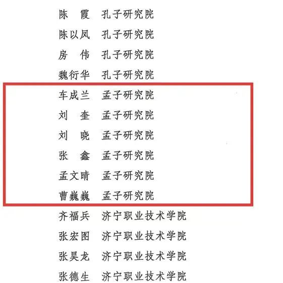 孟子研究院始终致力于中华优秀传统文化,尤其是孟子思想的阐发与传承,鼓励本院学者深耕经典,以扎实的学术研究为根基,推动孟子思想与当代社会价值相融合,积极服务于地方文化传承创新事业,主动肩负起“让优秀传统文化活起来”的时代责任。此次我院多位学者及其成果入选济宁市哲学社会科学理论研究“双百工程”名单,充分彰显了我院在传统思想研究领域的学术实力及社会辐射力。