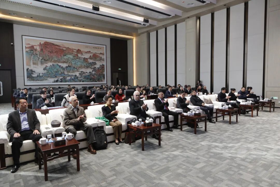 与会专家学者与海外华文媒体代表,围绕儒学的历史发展、当代价值、研究现状、国际传播及媒体融合等议题进行了访谈交流。研讨内容广泛而深入,不仅追本溯源,重探“仁者爱人”“中庸之道”“和合共生”等经典命题的当代价值,更以比较哲学与全球伦理的视野,阐发儒学智慧在应对现代性挑战、推动多元文明共存中的独特贡献。既有儒学对当代青年人格塑造的价值与影响探讨,也有对孟子“心性之学”与西方德性伦理的对话交锋;既包含对儒家经典文本的现代阐释,也探索其在全球语境下的传播路径。整场研讨兼具理论深度与实践视野,思想火花不断迸发,充分展现了儒学在跨文化语境中的丰富内涵与当代活力。互动环节中,现场听众向专家学者、海外华文媒体代表进行了提问,进一步促进了不同学术背景与文化视角的思想交融,生动诠释了“和而不同”“兼容并蓄”的儒学智慧,现场学术氛围浓厚热烈。
