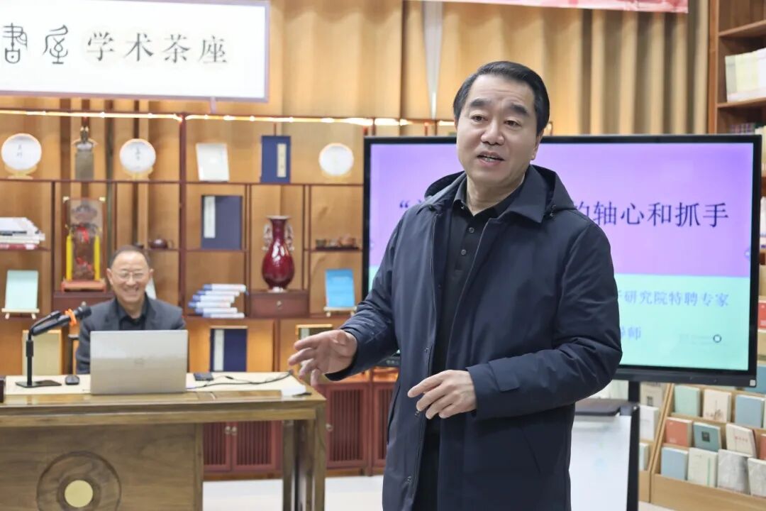 12月24日,扬州大学文学院教授、博士生导师,孟子研究院特聘专家、尼山学者,中国孟子学会副会长刘瑾辉在孟子研究院驻研期间,为孟子研究院全体专技人员开展专题学术活动。活动包含《“问题”是科研的轴心和抓手》主题讲座及“AI如何助力社会科学研究”学术对话两部分。孟子研究院党委委员、副院长赵龙参加并主持活动。