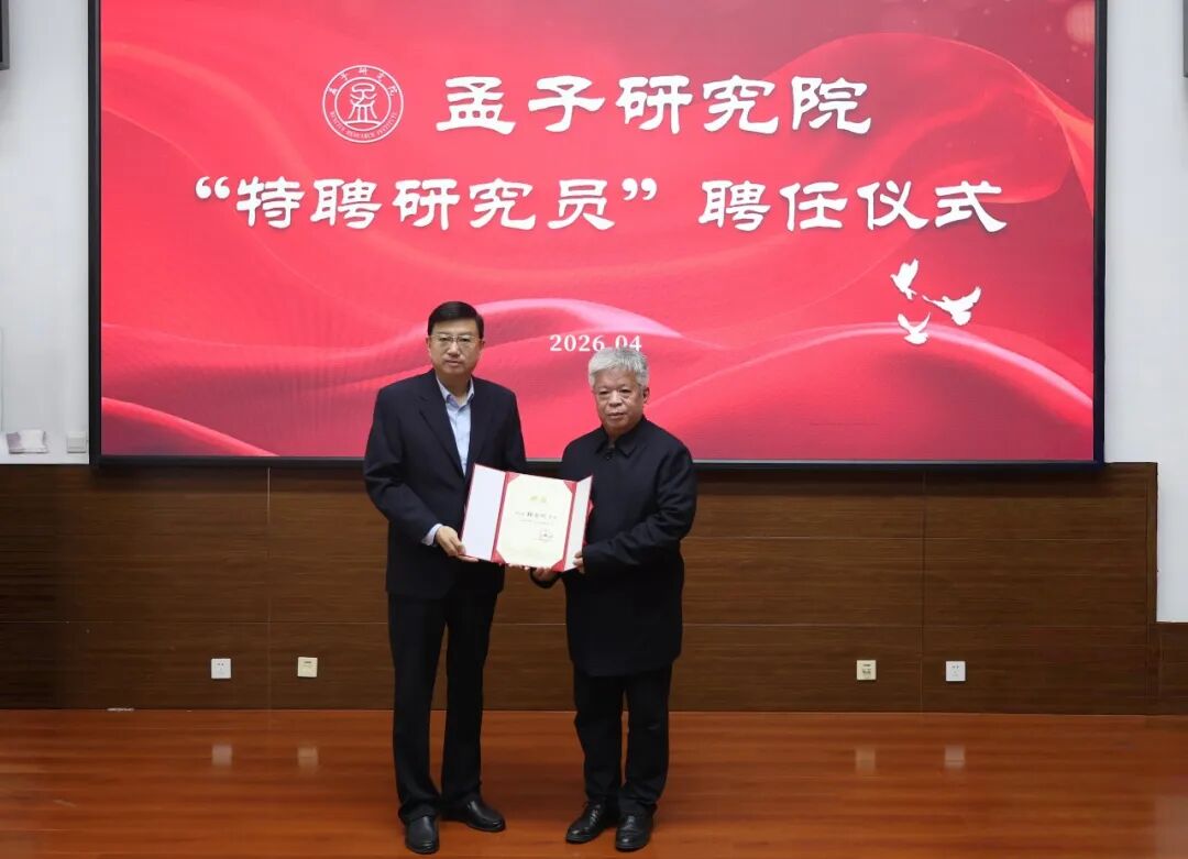 期间,袁汝旭向杨朝明教授颁发特聘研究员证书。